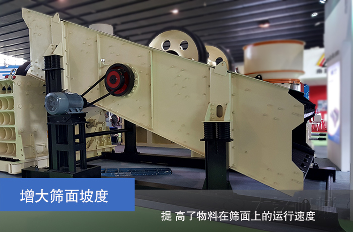 礦石沙料在篩面上移動速度慢,導(dǎo)致篩面上積礦厚, 壓礦嚴(yán)重。在實際使用中圓振篩的角度可以在 15°~35°之間調(diào)整,提 高了物料在篩面上的運行速度,物料在篩面上沒有積料現(xiàn)象的發(fā)生,并且能夠在篩面上很好的完成松散、分層和篩分的作用,處理能力大幅度增加。
